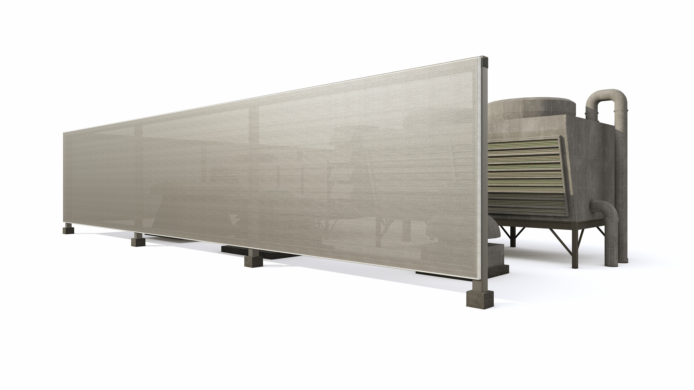FlexFacades roof screens maintain airflow around HVAC and mechanical systems. Because our tensile fabric can span longer distances than metal, less structural steel is required. This means cost savings of as much as 50% over metal, fewer penetrations into the roof, and less time required for installation.