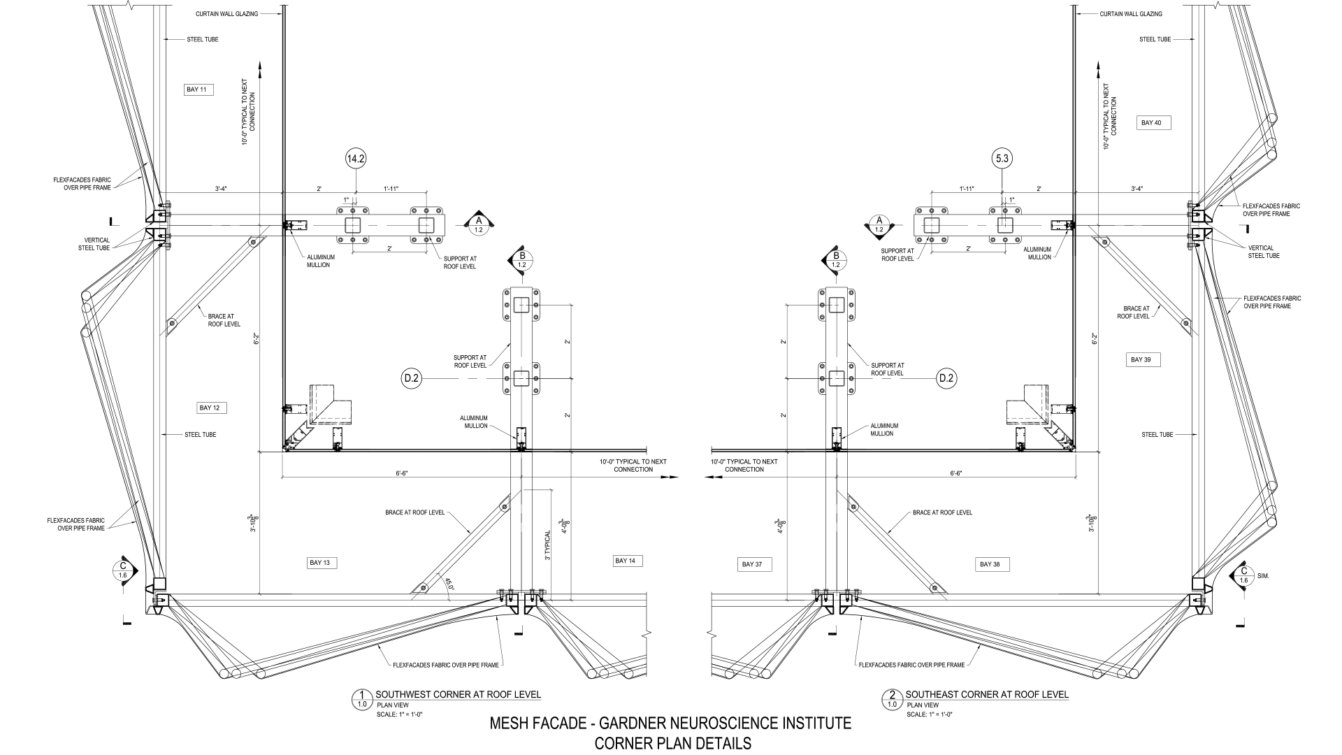 Some details about our exclusive experience building tensile facade systems: